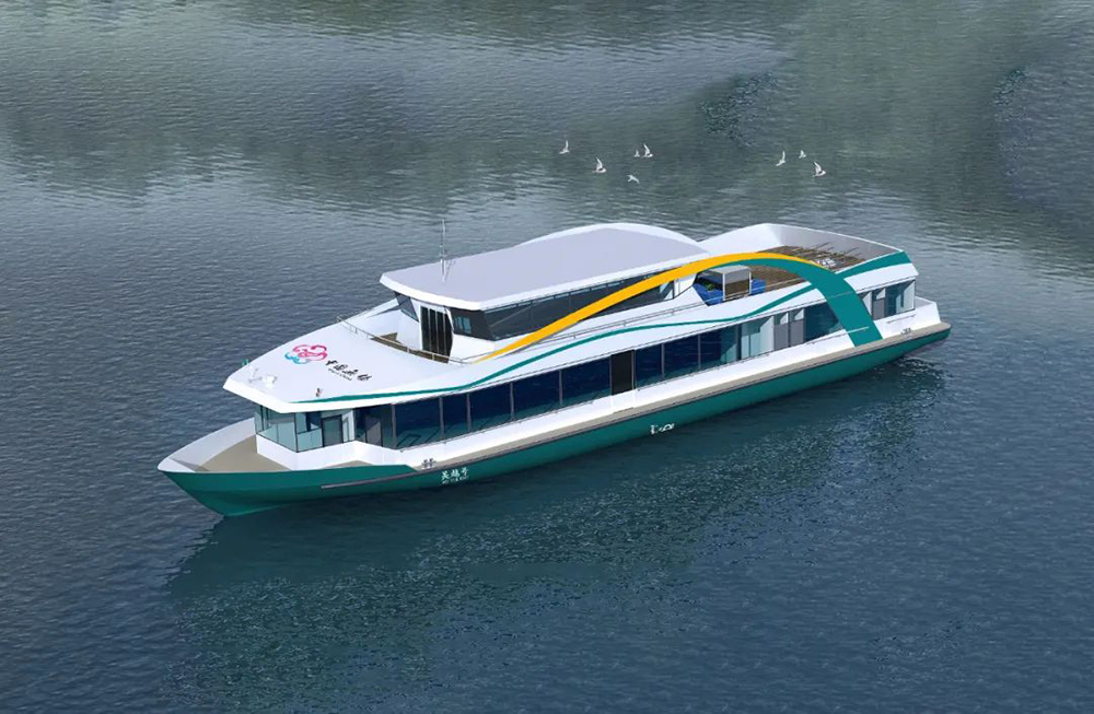 該船最大船長40m,型寬9m,型深2m,采用賽思億基于直流組網(wǎng)技術(shù)的S-Hybrid-R混合動力系統(tǒng),整個系統(tǒng)配置2臺160kW的發(fā)電機組,2套245kWh鋰電池組,驅(qū)動2臺90kW的主推電機,關(guān)鍵變頻電控設(shè)備采用賽思億自主知識產(chǎn)權(quán)產(chǎn)品。賽思億S-Hybrid-R混合動力系統(tǒng)具備多種推進模式,系統(tǒng)噪音低,動力系統(tǒng)先進,可滿足景區(qū)不同需求。該項目是賽思億在全國重點景區(qū)的又一示范!