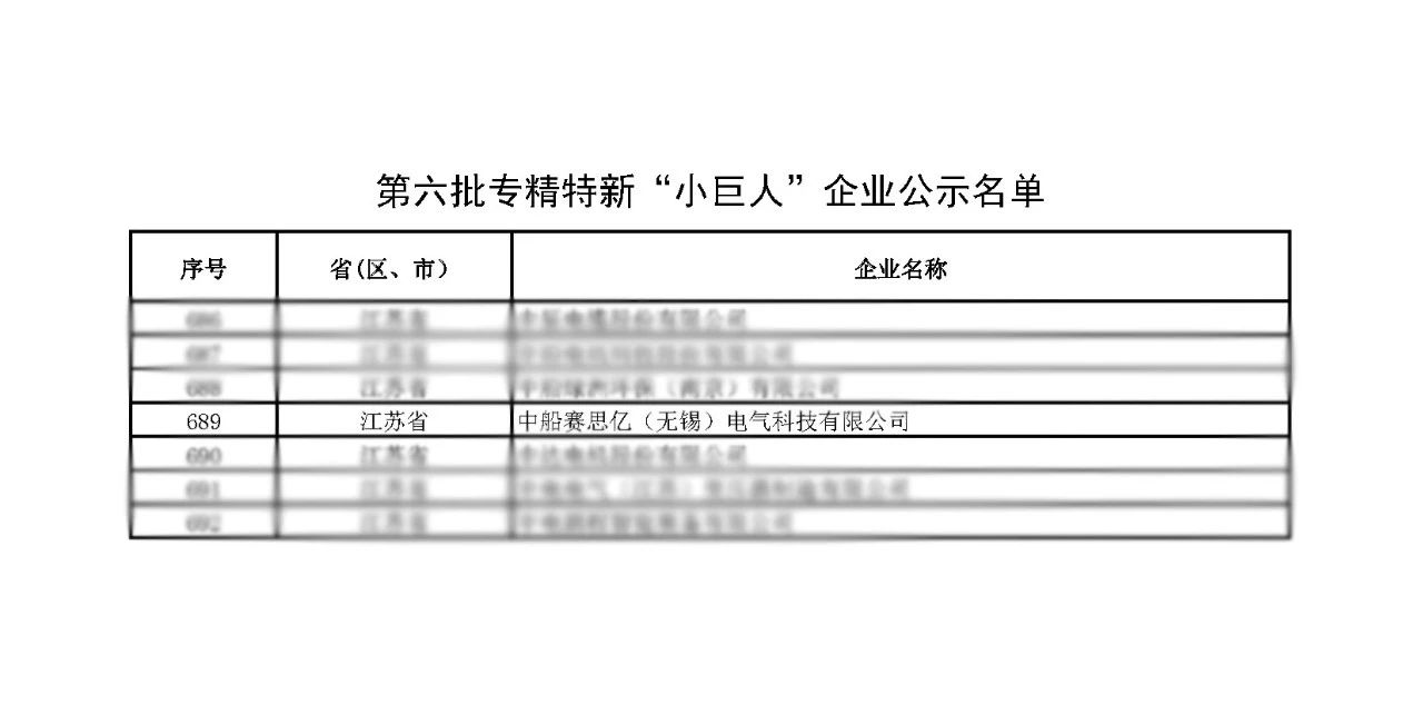 近日,江蘇省工信廳發(fā)布了第六批國家專精特新“小巨人”企業(yè)名單,中船賽思億(無錫)電氣科技有限公司在列。專精特新“小巨人”企業(yè)是“專精特新”中小企業(yè)中的佼佼者,是專注于細(xì)分市場(chǎng)、創(chuàng)新能力強(qiáng)、市場(chǎng)占有率高、掌握關(guān)鍵核心技術(shù)、質(zhì)量效益優(yōu)的排頭兵企業(yè)。