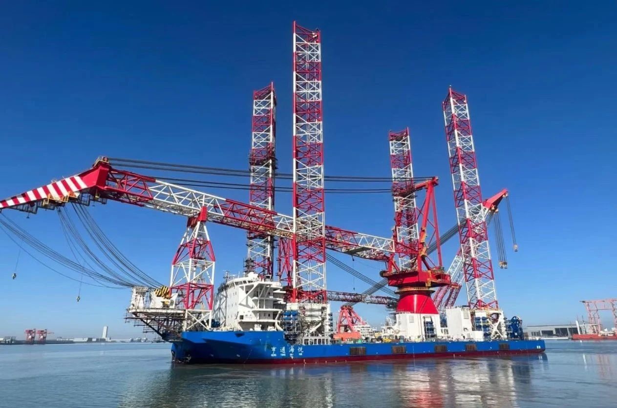 由亨通集團投資、上海佳豪設計、江蘇大津重工建造,搭載中船賽思億全套電力推進系統(tǒng)總成的1600T大型深遠海風電安裝平臺“亨通海悅”近日在大唐海南儋州120萬千瓦海上風電項目投入使用并成功安裝了12臺海上風機,順利完成首秀。